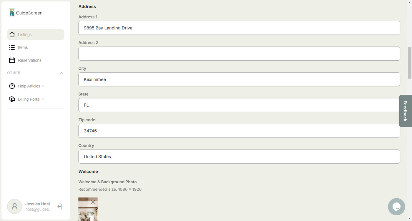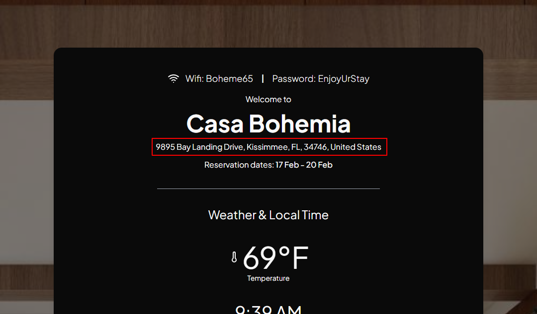 Fill in the fields with the property's address. The address you put in should appear in the main menu of the device.