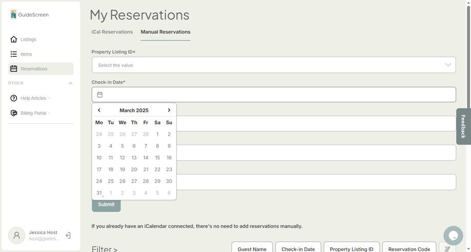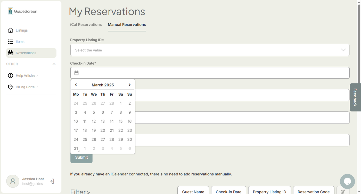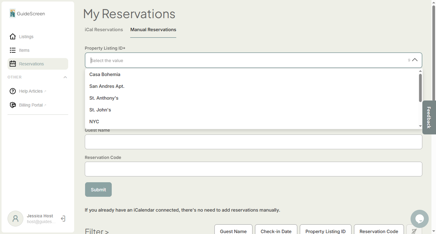 3. Select the correct property that you would like to add the reservation to under the Property Listing ID.