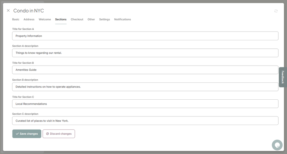 3. Go to the Sections Tab, select which section you want to place the items in (A, B or C). Then add an appropriate title for the section, say "Local Recommendations then click "Save Changes".